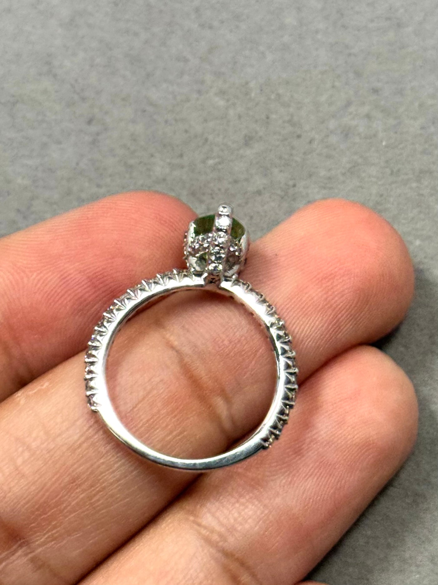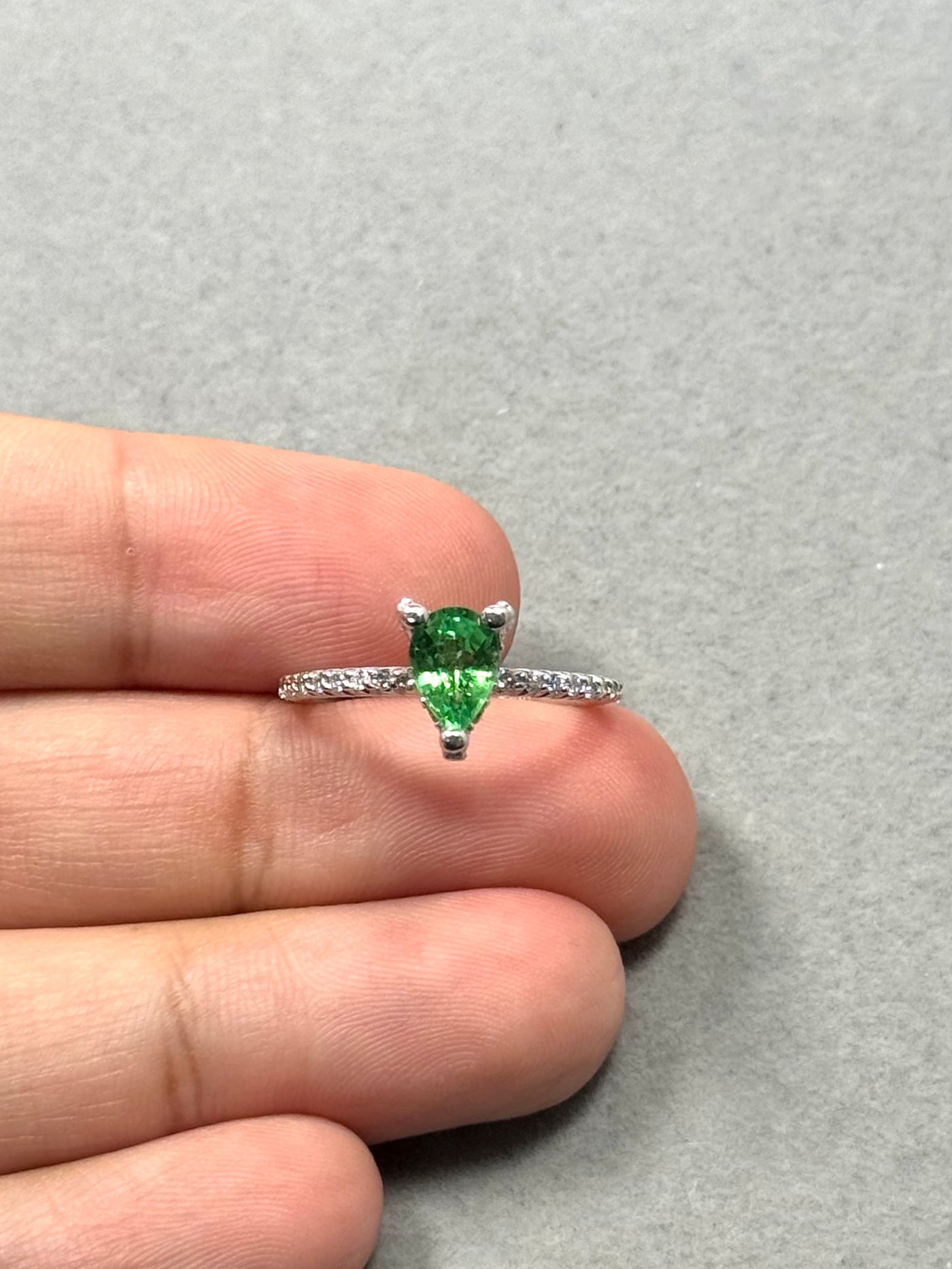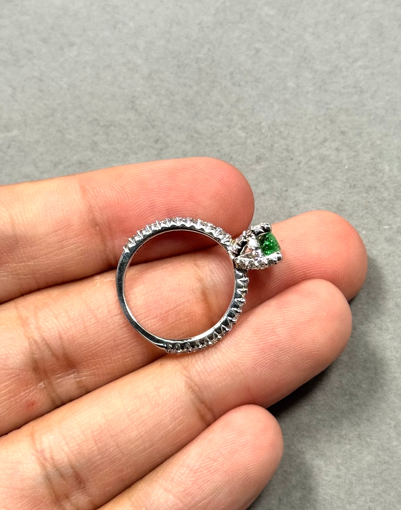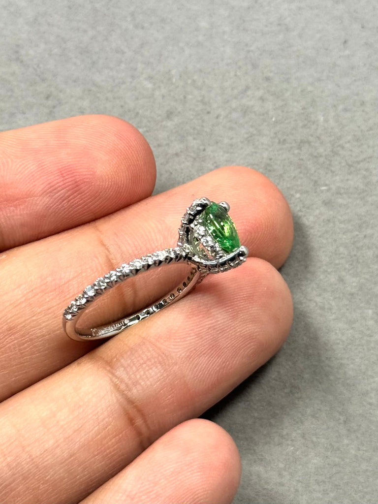 Tsavorite Garnet & Diamond Ring in 14K White Gold | 1.04 ct Pear Tsavorite + 0.43 ct Diamonds | Natural Gemstone Women’s Ring