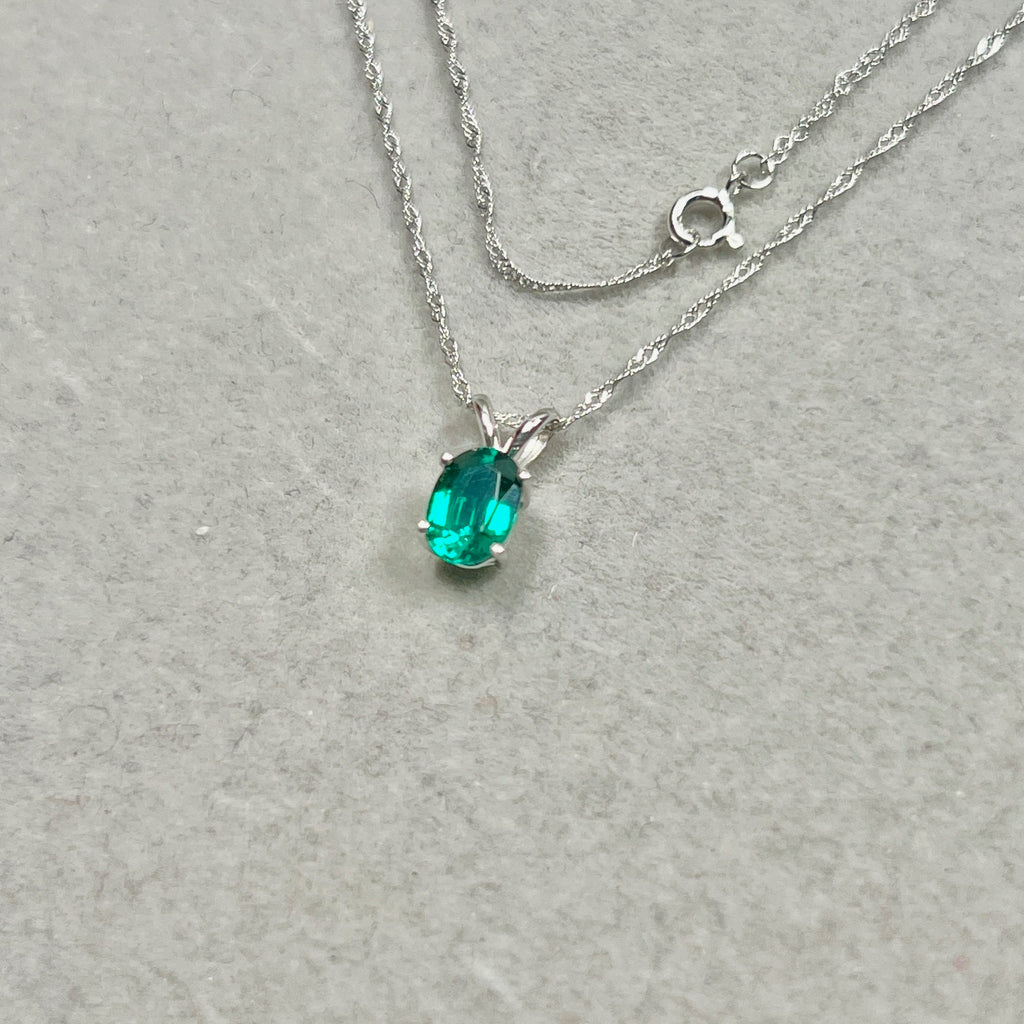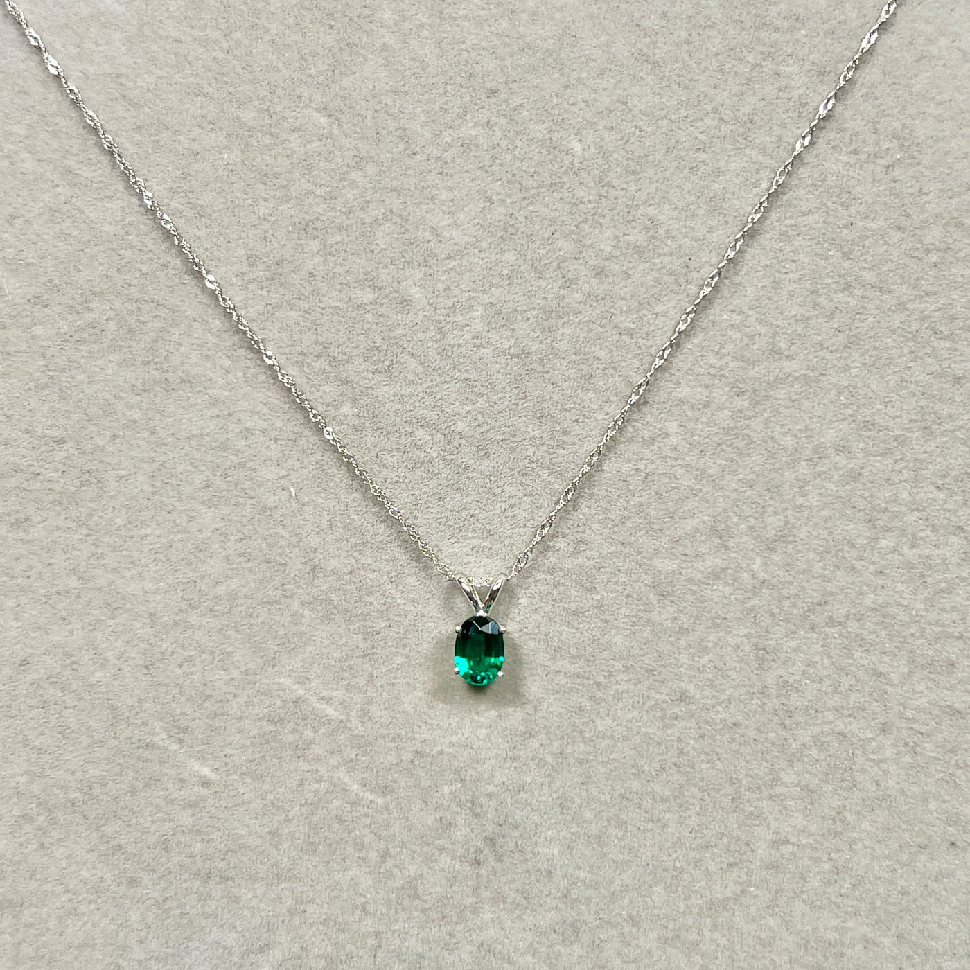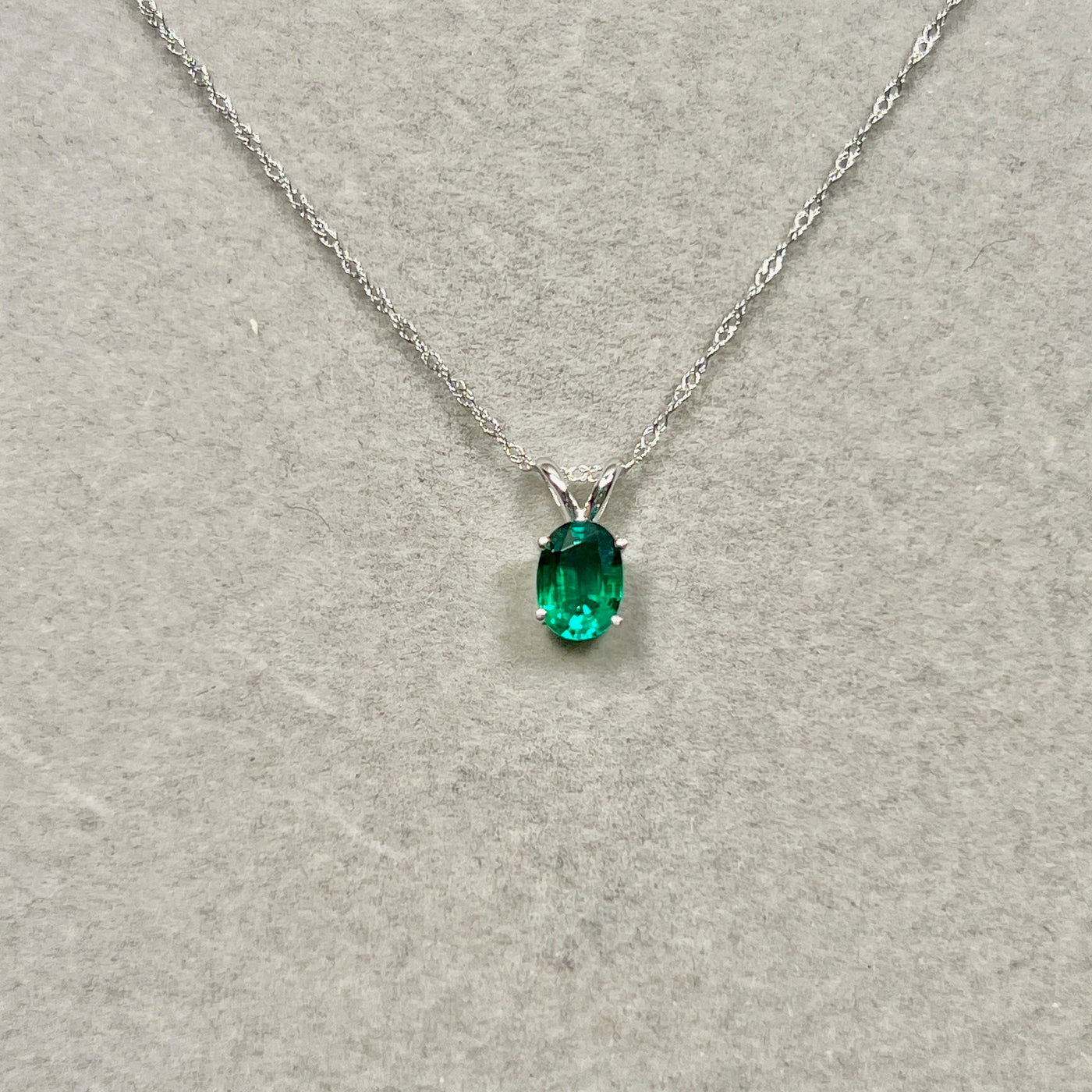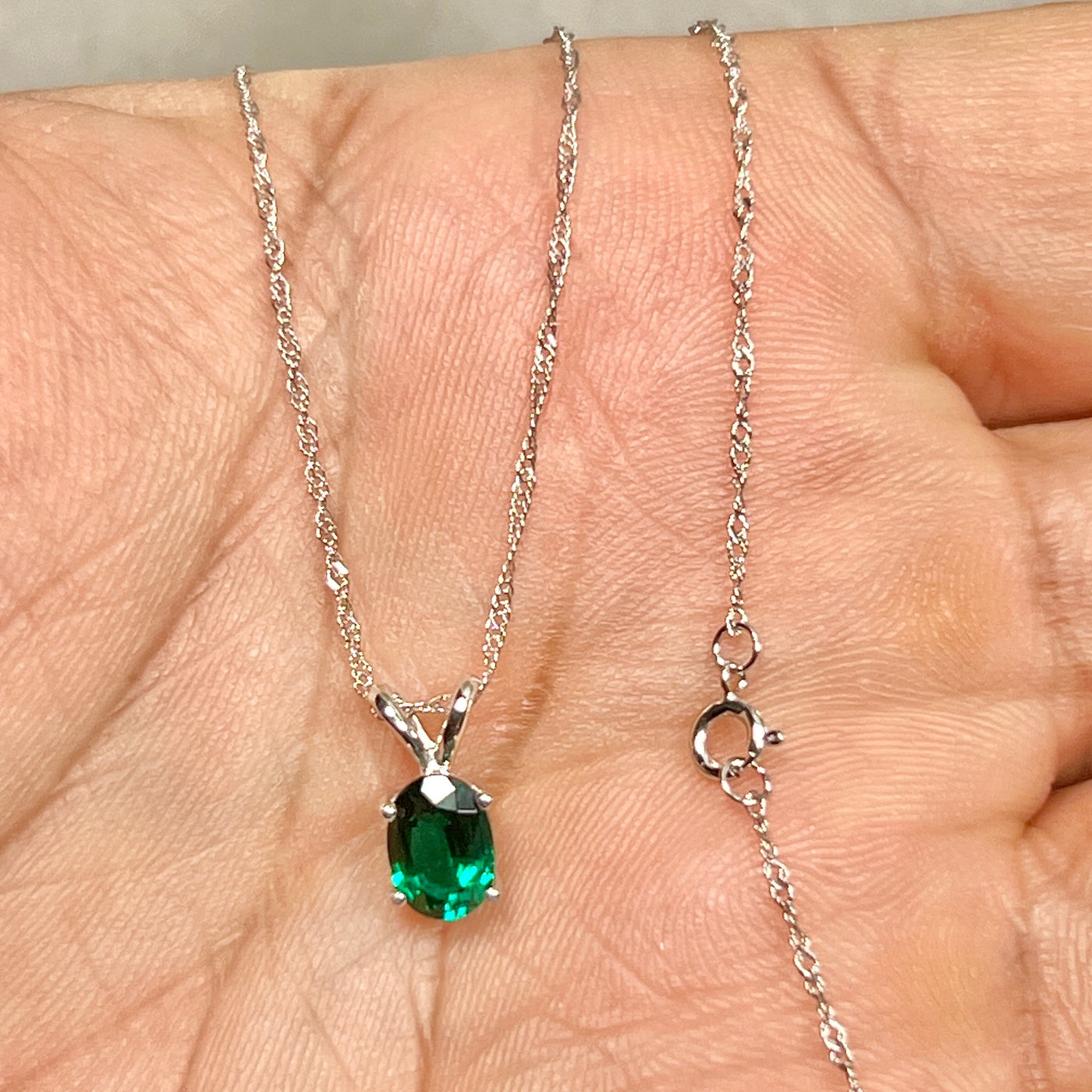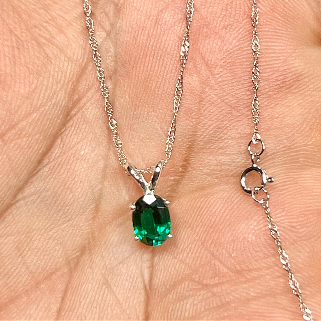 Understated oval emerald necklace women 0.68–0.75 Cts 14K white gold Modern Heirloom prong-set solitaire
