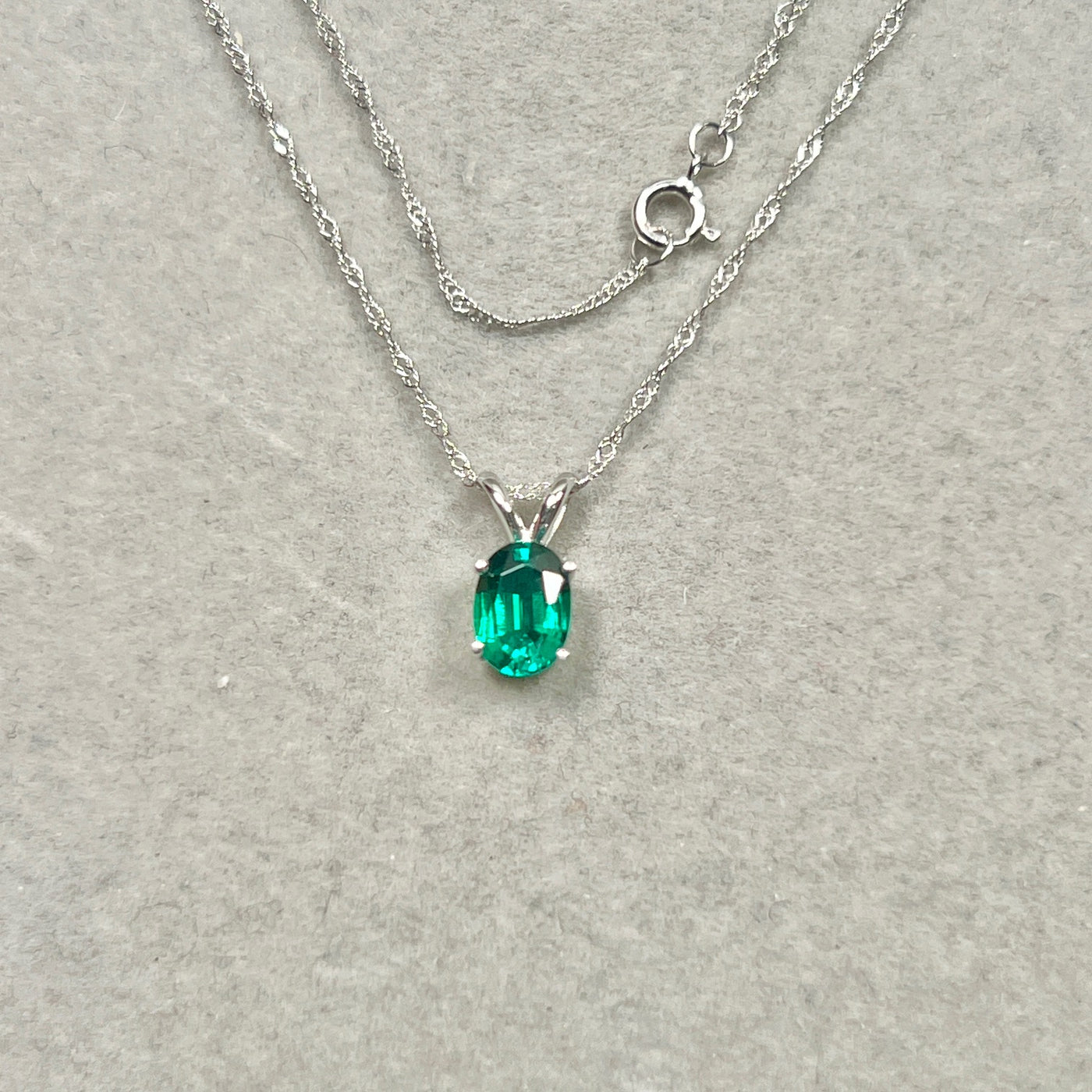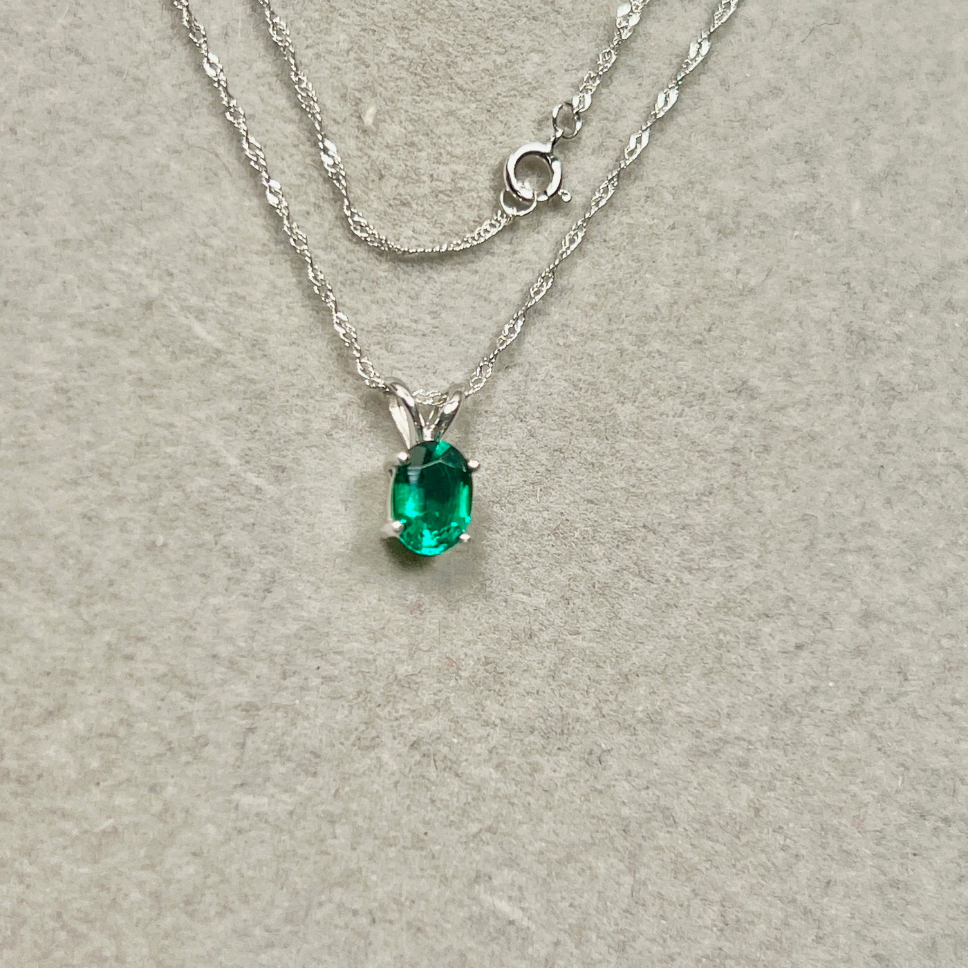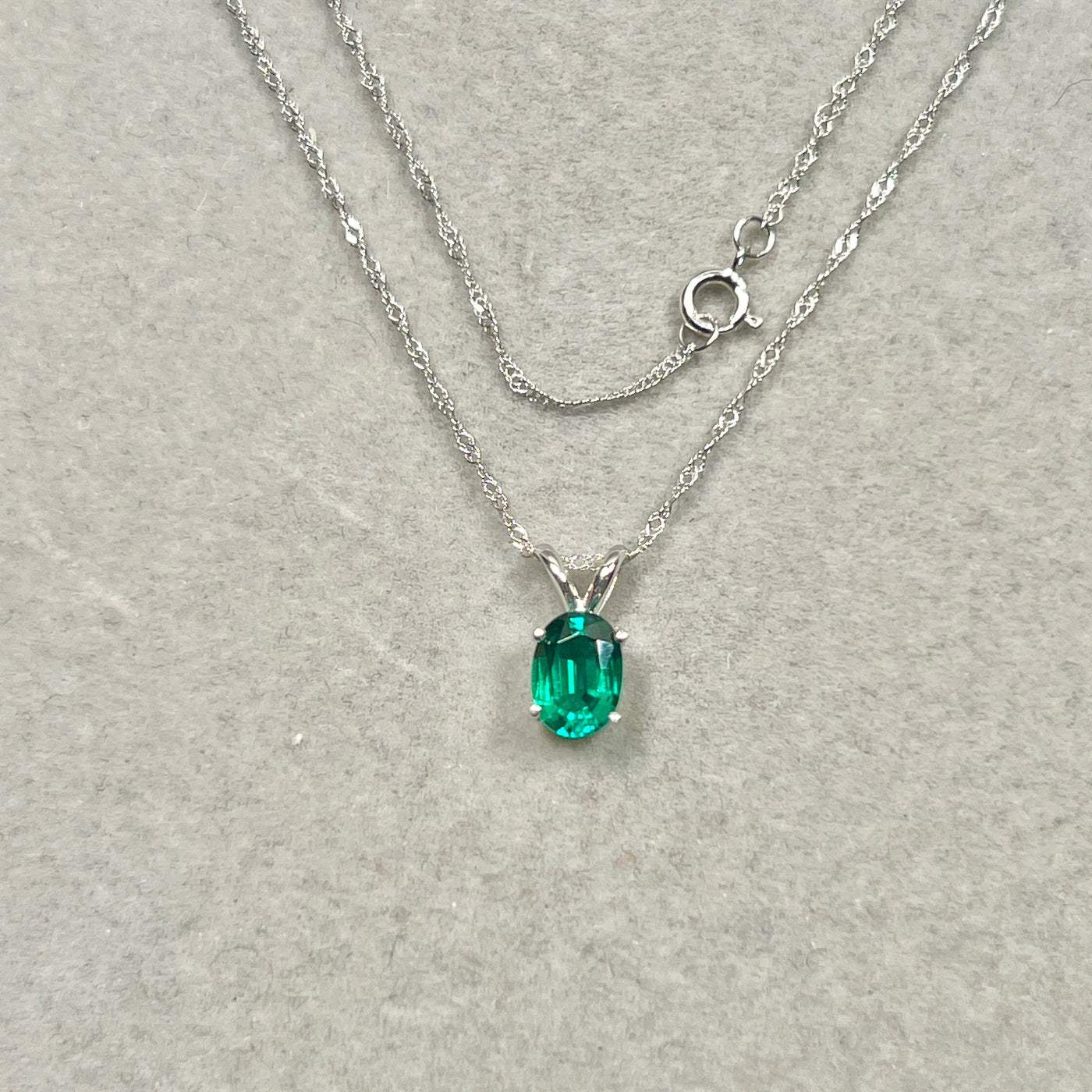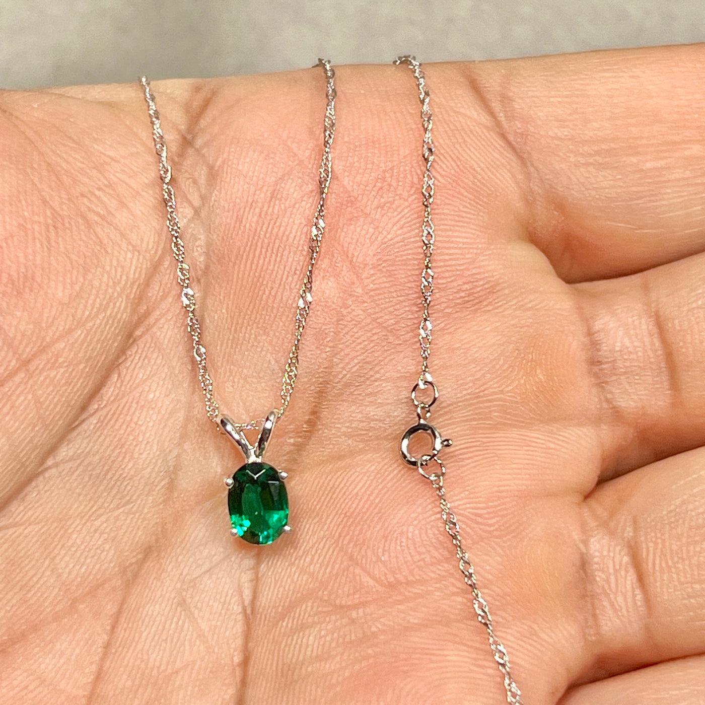 Understated oval emerald necklace women 0.68–0.75 Cts 14K white gold Modern Heirloom prong-set solitaire