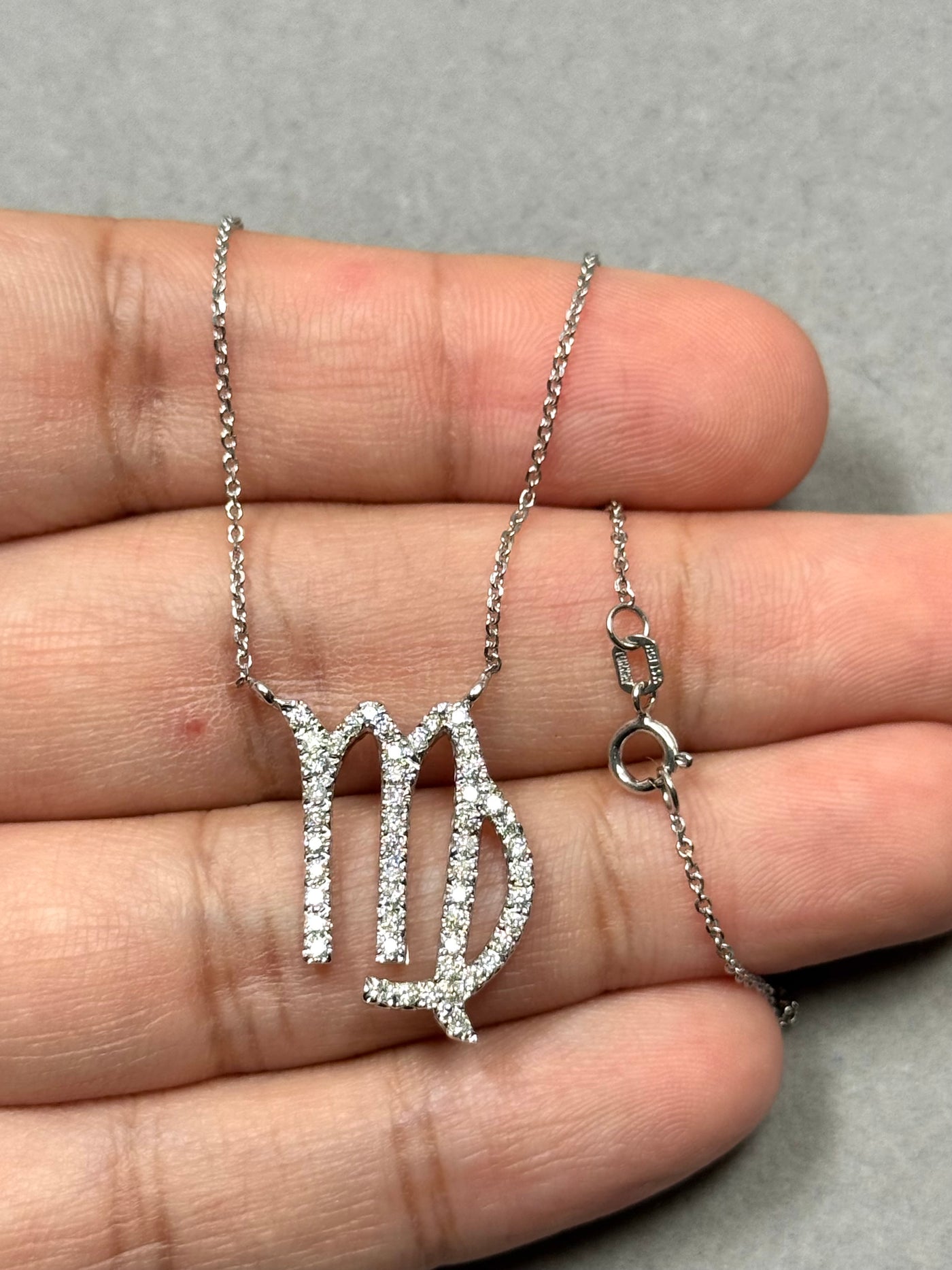 Virgo Diamond Zodiac Pendant in 14K White Gold | 0.45–0.50 CT I-J SI2-I1 | Astrology Necklace | Birthday Gift for Virgo Women